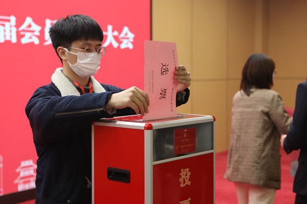 与会代表认真填写选票,郑重投下选票,选举产生了365英国上市官网在线校友会第二届会长、副会长、秘书长。