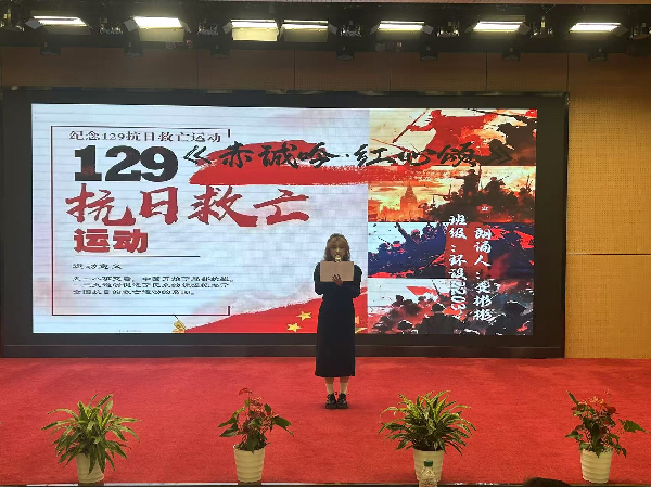 吴世杰在讲话中表示,1935年12月9日,一场由中国共产党领导的波澜壮阔、声势浩大的抗日救国学生运动,在中国青年运动史上写下了无比光辉的一页,89年后的今天,我们站在这里以青年人特有的激情和真情歌颂伟大祖国和革命先驱,就是要始终铭记历史,赓续红色精神,筑牢家国情怀。他希望同学们以一二•九运动的青年学生为榜样,把爱国情、强国志、报国行融入血脉,浸入灵魂,与祖国共发展、与民族同命运,刻苦学习、锤炼本领、奋发有为,不负青春、不负韶华、不负期待,做堪当民族复兴大任的时代新人。